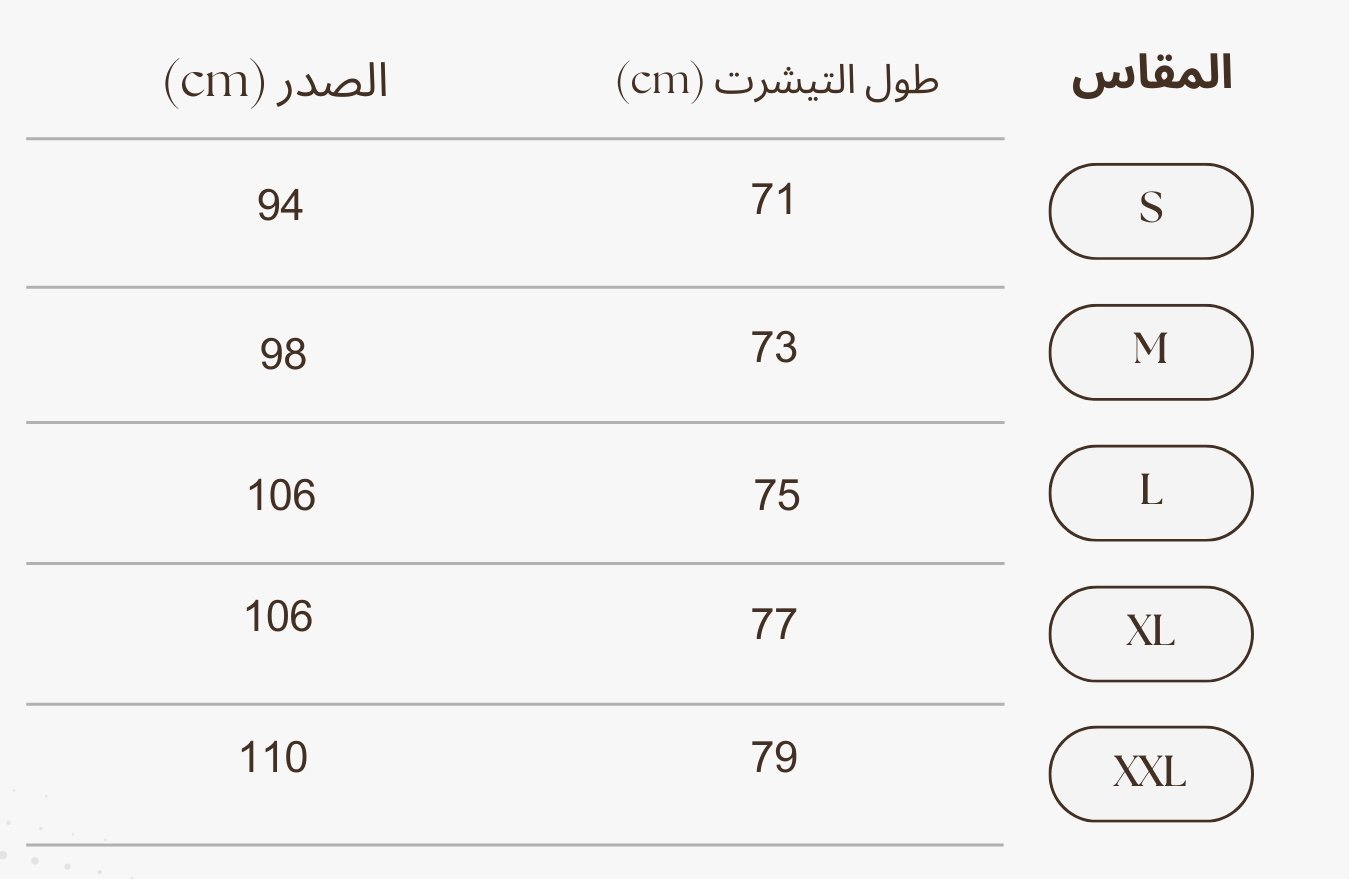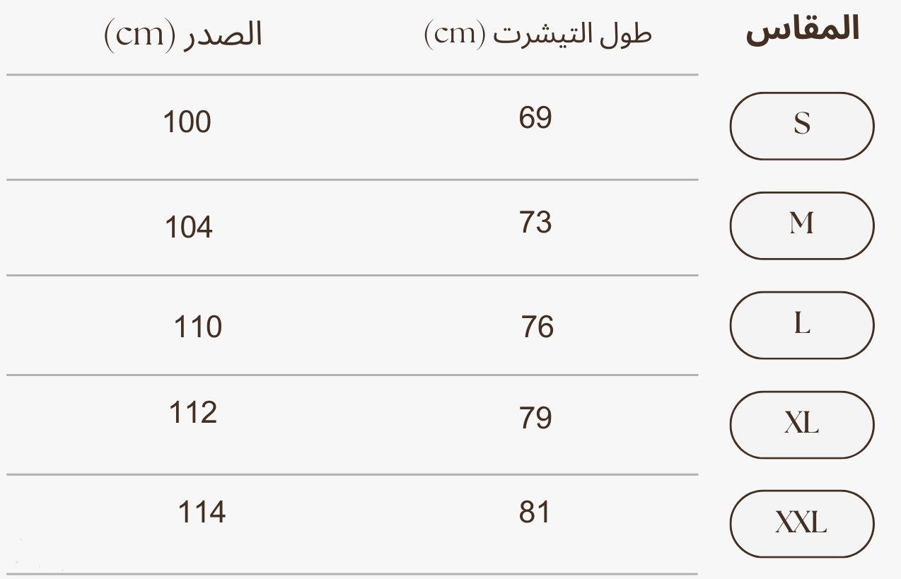 جدول مقاسات الاطقم والكلاسيك تيشرت :